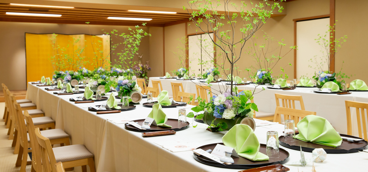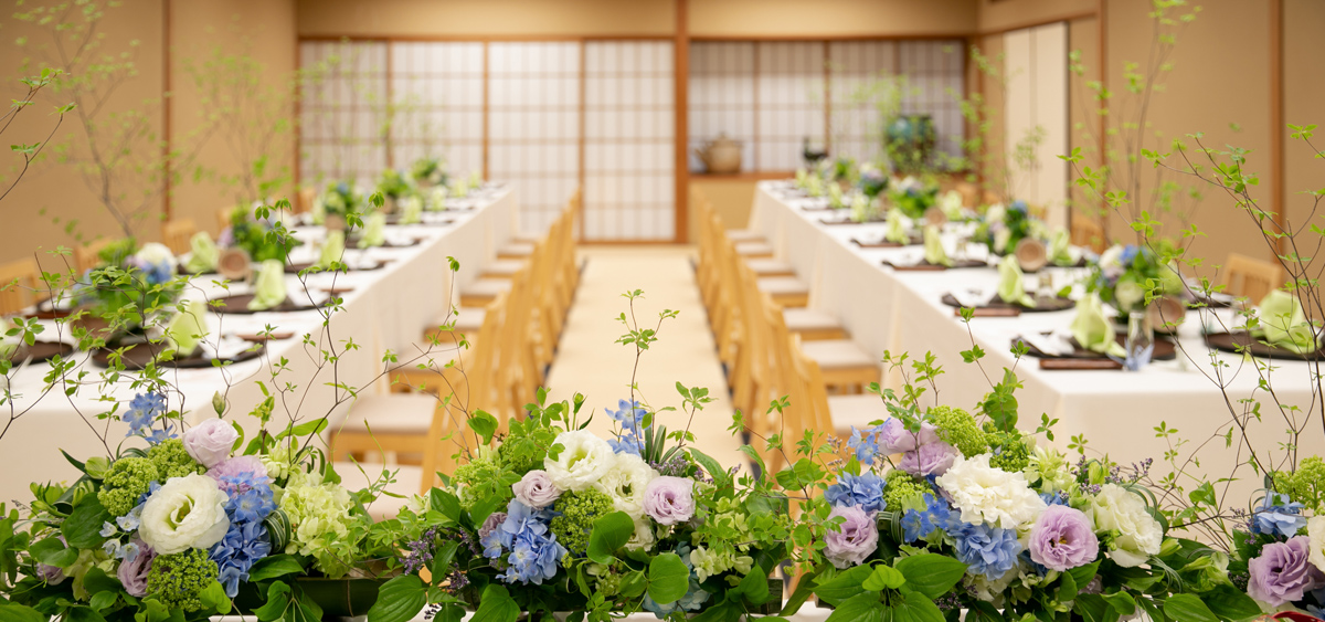 派手さを避け、厳粛でありながら風格のある調度品で設えられた大広間。