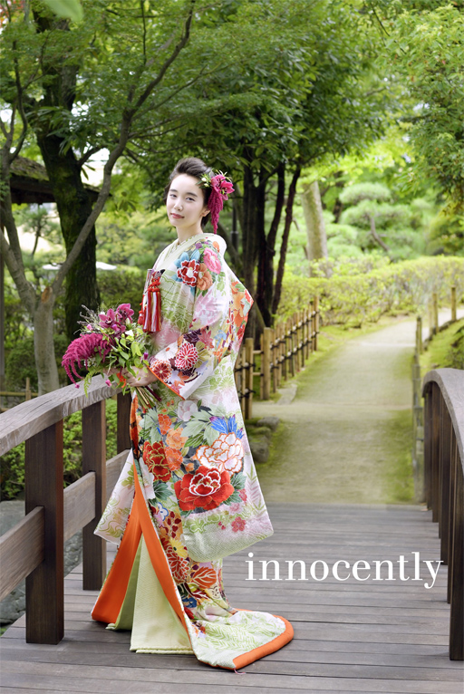 豊富な品揃えが魅力の和装は白無垢や色打掛、引き振袖など。格式を守りながらも、時流に沿った衣裳をご提案致します。